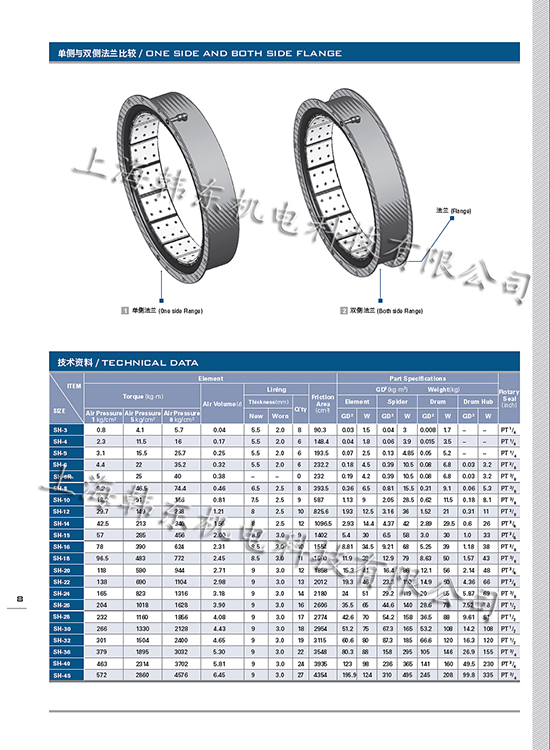 二、SH型号气动离合器是工业,船舶业的理想选择,广泛应用于切机,压轧机,成型机,棒磨机,球磨机,自磨机,半自磨机,船舶发电机,泵,绞车等。在设备中离合器简单的设计和可调节的能量传递保证了可靠的运转和*低的维护成本。当改造现有磨机或其他设备时,安装AH型离合器以替代现有直接驱动系统,仅需要做很小的工程改动。SH型号气动离合器尤其适合配备在各种恶虐工况下运行。