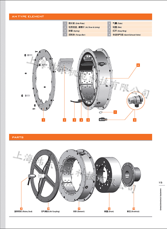 2.SH型离合器,是豪沃斯*具代表性的产品,通过向气囊注入空气使得摩擦板和滚筒内壁相咬合