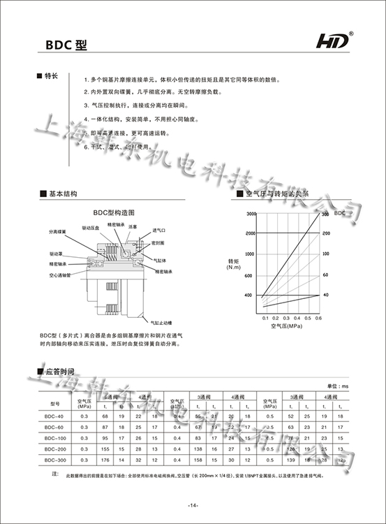详细信息| 询价留言品牌:上海韩东机械 型号:BDC-40/60/80/100 材料:铸铁 规格:BDC 扭矩:400+ 适用范围:工程环卫车辆、工业机械设备 重量:10 转速:1800 产地:上海 供应商:韩东机械 转速:1800 产地:上海 快速散热多片式离合器|气动多片离合器BDC型