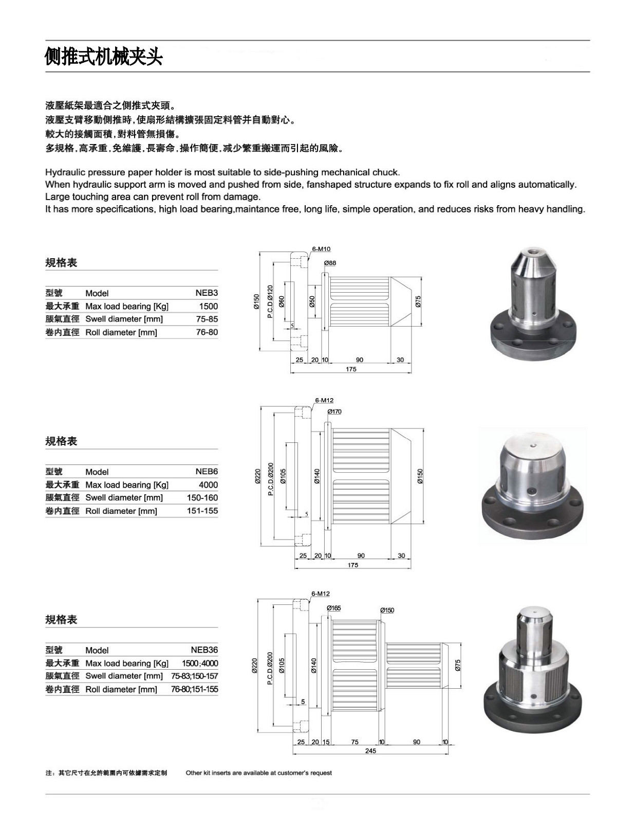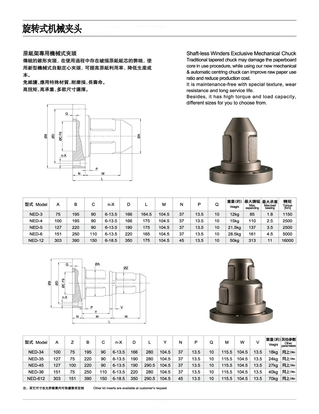 1、机械式夹头无需复杂和昂贵的管道与气动液压系统,夹头终生无需润滑,维护成本低;