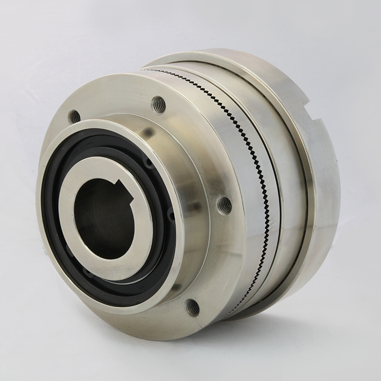 齿合型气动离合器(牙嵌式气动离合器)精确传动无滑擦可能,适宜于湿滑等较恶劣环境中。虽然外形小巧但可以传达大扭矩,可在狭小空间应用。此类离合器安装时,必须保证端面齿之间有一定间隙,使空转时无磨齿现象,但不得大于δ值。