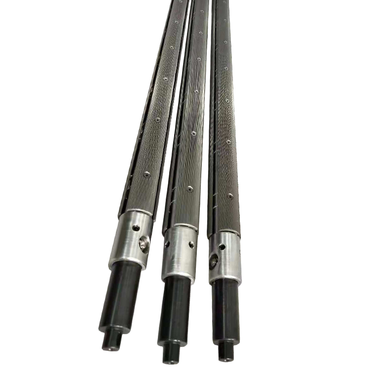 2、板条式气胀轴:气胀轴的表面规律分布圆孔,外压板通过螺钉和支撑柱固定于内压板。适合于收卷精密度较高的机械或收卷较轻的物品。